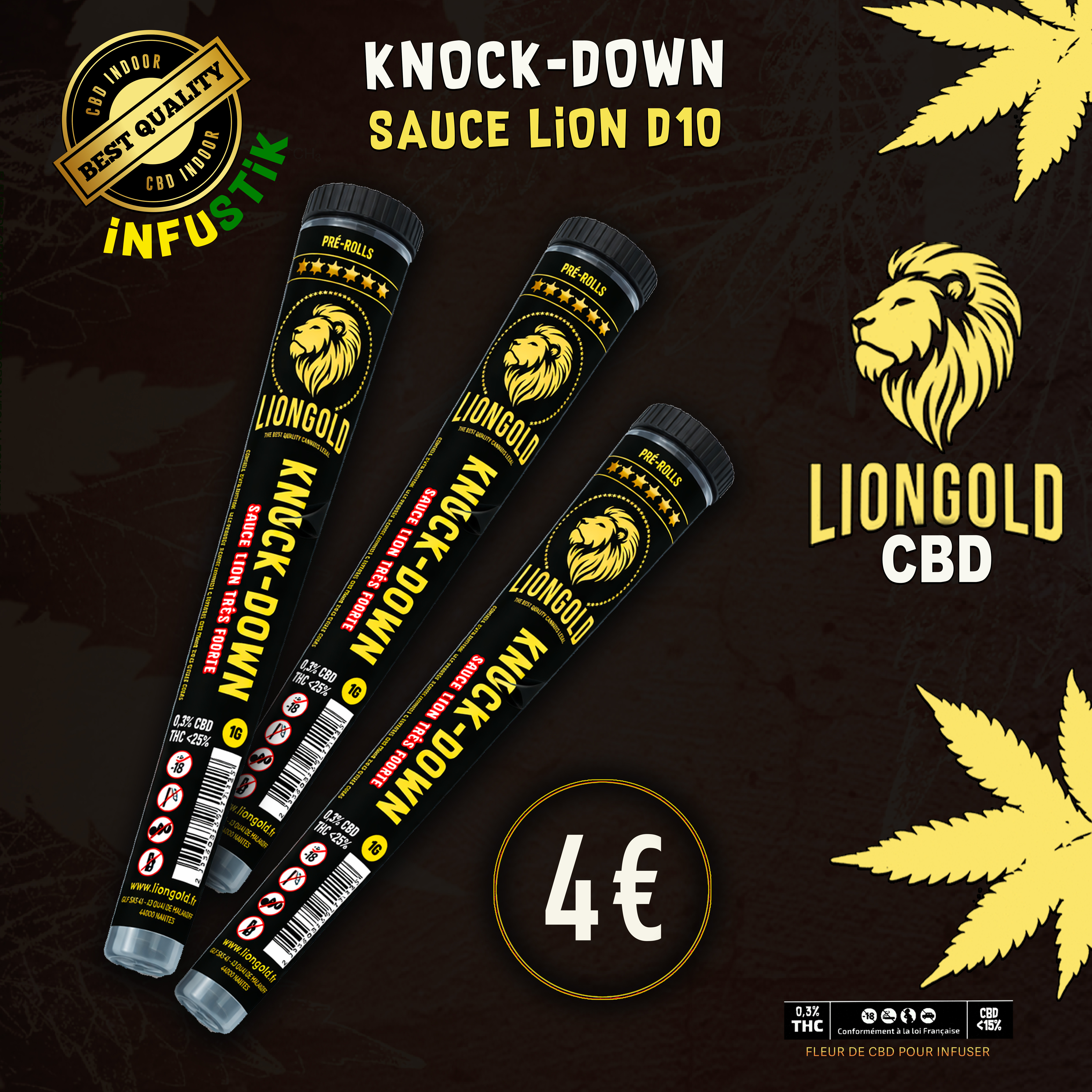 Découvrez Infustick Knock Down D10, un stick CBD prêt à l’emploi conçu pour offrir une expérience simple, rapide et efficace. Idéal pour les consommateurs recherchant praticité et puissance, ce format nomade permet de profiter du CBD en toute facilité.